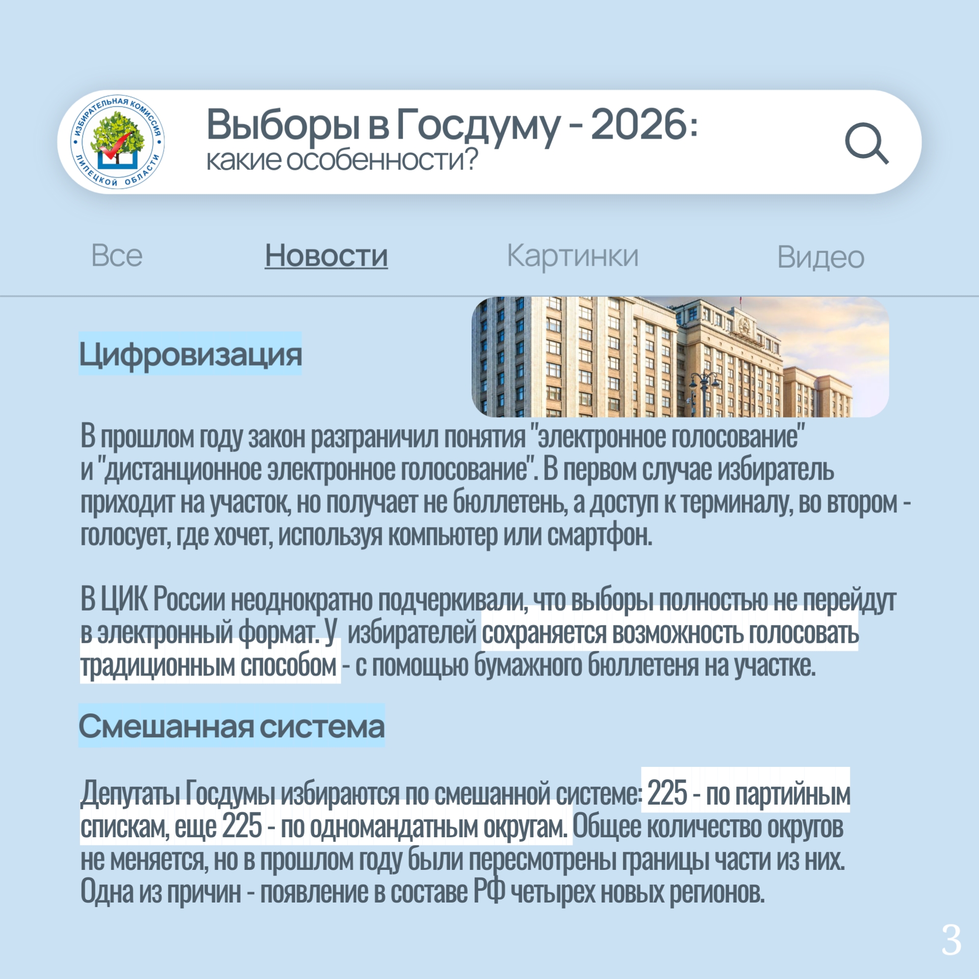 Предстоящие выборы в Госдуму имеют ряд отличительных черт, которые важно знать каждому избирателю
